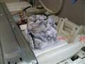今回の作業はまず前面パネルを取り外し、乾燥ユニットから排出口迄のダクトに詰まった衣類クズ取り出しで、結果的にソフトボール1個分の衣類クズが出ました。一旦前面パネル取り付け、今度は背面に移り乾燥ユニットを取り外しです。取り外したユニットを見るとやはり目詰りしており、新品ユニットを取りつけて修理完了しました。