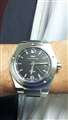 黒文字盤・3針・SSブレスの時計で、一見すると面白味にかけるシンプルなデザインですが、よく見ると文字盤は凝ってますね。高級感があります。ギョーシエ彫りや立体的なバーインデックスと外周5分刻みのメモリ。2重文字盤のようにも見えます。日付表示は白抜きで見やすく、繊細な秒針はSSで力強い感じがします。