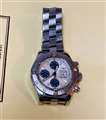 いかにもブライトリングというごつさ・厚み。クロノマット44などの最近のラインから見るとデザイン的には旧世代に属するかも。曜日を配するため,ブランドマークが2時位置にあり,2時のインデックスが削られているのがバランス的に×。