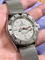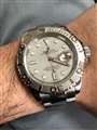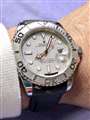 ヨットマスターの名に相応しく夏の日差しに輝くプラチナベゼルと赤の秒針が最高です。