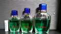 内溶液の青が綺麗で、癖のないデザインのボトル形状もあって、何処に置いてもそれなりに映えます。