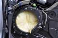 ドアの鉄板部にはスピーカーのすぐ後ろに吸音材、そこから離れたところに反射材、不要な共振を抑えるデッドニングシートを貼り付けました。