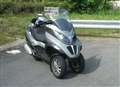 MP3に乗った後でベスパに乗ると、普段よりもさらに軽快な印象(ヒラヒラ感)に驚きました。それだけMP3は二輪スクーターに比べて安定感のある乗り物だということです。普通自動車運転免許で乗れるので、今までバイク経験が無くても興味を持たれている方が多いと思いますが、良い意味で一般的なスクーターとは異質な乗り物と捉えた方が的を得ていると思います。停止中や、バイクを降りての取り回しさえ慣れてしまえば、楽に扱えるのではないでしょうか。とにかく、まずは試乗が必要な新しい乗り物である事は確かです。