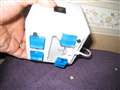 ちなみに本体側への電源プラグはL型ミニUSBコネクタです。ACアダプタは横出し接続のため、汎用の携帯充電用のアダプターに交換。ストレートのミニUSBコネクタを本体下部から接続して、壁掛け使用しています。配線がスッキリしました。