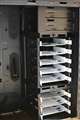 3.5インチベイは、横挿しで完全に取り外せるトレースライドでメンテしやすく、合計8基で、下3つが固定、上5つが取り外せるようになっていますので、私のように現状3つで足りてる場合は取ってしまうと作業しやすいですし、エアフローも効率がいいかなと思います。