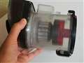 大きなゴミはクリアー筒内に溜まりますがすぐにクルクル回らなくなります。細かいゴミ塵は目の細かいジャバラのプリーツフィルターで取り除かれます。