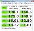 開けてみた結果、フルサイズが使われていることを確認できました。7mmか9mmかは確認していません。ベンチマーク結果も上げておきますが、Read 190MB/s, Write 150MB/s と、こちらもまずまずでした。SATA3に対応しているかどうかは分かりません。そのうち試してみます。