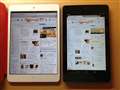 Nexus7のほうが見やすい。iPad2よりは見やすい。Nexus7とiPad3を使った後にminiを使うと老眼になったように感じてしまう(まだ老眼は入ってませんが)。やってみると、この感覚とても理解してもらえると思う。miniしか持たない人には全く問題がない。