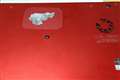 大きく剥離したので保護のために上から透明なフィルムを貼りました。 |