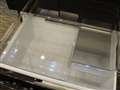 他社製品に比べて革新的だと感じた点は、冷蔵庫のルーム構成。生鮮食品を保存するチルドルームが3室に分かれているのがユニーク。チルドルームを上下2段に分け、上段は幅57センチ、奥行24.8(底面)〜28.1(上面)戦地、深さ10センチと15Lの容量があり、冷蔵庫の幅いっぱいに収納できる。大きなトレーやお皿をそのまま収納できるのが便利だ。下段は2Lと7Lの小型、中型のチルドルームに分かれ、小さな食品も整理がしやすい。