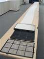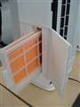 手前からプレフィルター、脱臭フィルター、HEPAフィルターと、広げたHEPAフィルター |