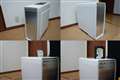 ホワイトとシルバーの組み合わせカラーで、前面に青色LEDが光るのは同じだが、カーブを取り入れたデザインでオシャレ度アップ。