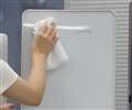 ステンレスを採用した拭き出し口とフラップ部分 |