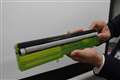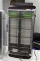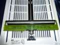 透明の背面パネルのデモ機。黄緑のユニットが上下に動いてプレフィルターを掃除する |