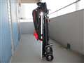 この製品のもう一つの売りではないでしょうか。折りたたみ時A4サイズに収まるというのは誇張ではありません。さらにこのサイズで片輪とスポークだけで自立ができる。設計者の妙技、恐れ入りました!狭いマンションに住む私のような環境下では、この収まりだけでも購入の動機になります。