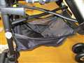 荷物収納については、ハンドルは分割型のためバッグを引っ掛けることは容易です。座面下収納は広さは十分ですが、X状のフレームが邪魔をするためあまり背の高いものを収納することは出来ません。