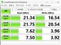 CDMベンチの換算値では、19.112/18.244MBpsとほぼ同等となっており妥当なベンチマーク結果となっています。