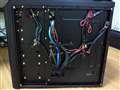 ケーブルが厚いのでどうしても裏配線側のサイドパネルを押さえつけながら取り付けてます。