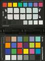 参考までに、同じ色温度設定(太陽光)で撮影したカラーチャートの比較写真を載せておきます。