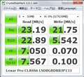 ベンチマークでの速度は通常のSDHCカード用では最速のカードリーダー バッファロー BSCRA38U2ではシーケンシャルリードが23MB/s、シーケンシャルライトが21MB/s(MLCは22MB/s)と通常のSDHCとしてもトップクラスのスピードで、専用カードリーダーのSanDisk SDDR-199-J20だとシーケンシャルリードが29.3MB/s、シーケンシャルライトが25MB/s(MLCは26MB/s)とかなり速い数値でしたが、書き込み速度の方は公称値の30MB/sにほど遠い数値なので、一時期公称値は偽りだと思っていました。