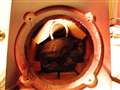 エンクロージャー内部も凝った構造ですが、バスレフポート上のダンボール板だけが何ともチープ。(笑)