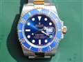 文字盤までイエローゴールドのコンビモデルの青サブ |