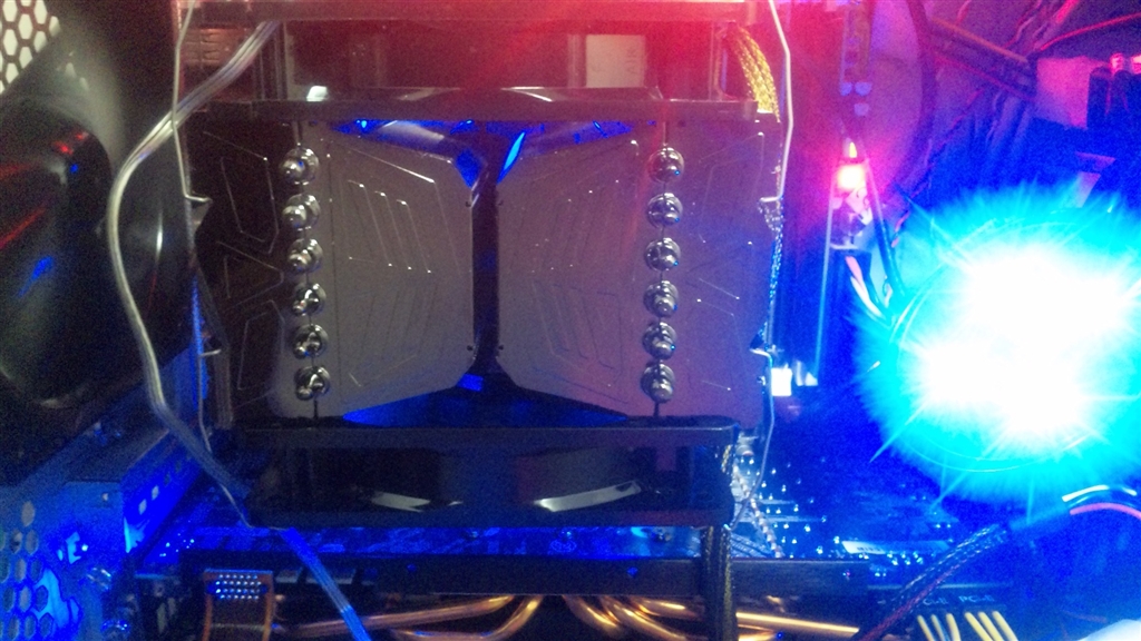 右の青い発光体はAntecのSPOT COOL.上の赤色はケース付属ファン。