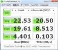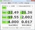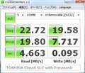 画像も掲載しましたが、バッファローなら、シーケンシャルリードの値が何れも23MB/secを超えます。シーケンシャルライトの値も微妙に低いです。