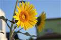 マクロ撮影。背景が青いのは、偶然隣にあった植木鉢が写っただけ(笑) |