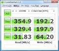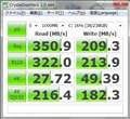 Read=355MB/sec、Write=215MB/secの公称値に期待しながら計測開始。