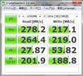SATA2での公称値はRead=265MB/sec、Write=215MB/sec。
