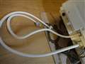 どちらも給水用と排水用ホース、電源コードとアースの取り付けです。