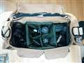 純正コンパートメントにはレンズをいくつか。サイドポケットにはハーフNDフィルターとブロワー等の整備用品。