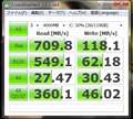 CrystalDiskMarkの値が低いのは、CPU(Core i3 380M)やマザーボードの古さの影響もあると思います。