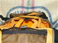 蓋裏は伝統のメッシュの大型ポケット、本体正面にはベルクロ止めのポケットと更に中には、メッシュポケットを備え、収納スペース両横にも小型ポケットが有りますので小物類はそれなりに詰めます。
