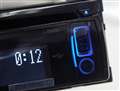 ディスプレイを中心に、左にボリューム、選曲等の操作キー、右にUSB&AUXの外部入力部を配置したデザインは、機能的にシンプルにまとまっています。USB&AUX部はイルミネーション付き。差し込み口がわかりやすいと同時に、デザイン上のアクセントとなっています。スライドカバー付きなので、未使用時のホコリの進入も気になりません。