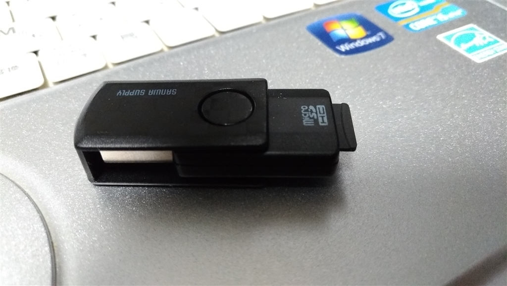 『カード差込後の突起』サンワサプライ ADR-MCU2SWBK [USB microSD ブラック] まぐたろうさんのレビュー・評価画像2/2