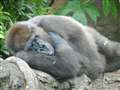 透明パネルごしの遠くにいるゴリラの表情もクッキリ!