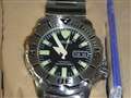 このブラックモンスターは、7s26を積んだ自動巻きの時計です。自分のモンスターは日差でプラス10秒くらいです。ボーイとくらべてベルトがしっかりしており、安心感があるとおもいが、かなり重いです。あと、ベゼルの12時と6時の方向に、それぞれ3つずつ溝がありますが、結構ホコリが入りやすいです。ハック機能もないですし、シンプルな作りですが、夜行が異常に明るく、ダイバーウオッチとしては素直に使いやすいのではなでしょうか?わたしとしては、針のカラーをシルバーにしてほしかった。