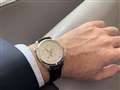 もともとクラシックドレスウォッチなのでシャツのことも考えて少し小さめですが、モデルチェンジにより39ミリのケースにしては大きく見えます。