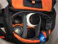 小物収納も充実しており,上記レンズ,カメラ以外に,タブレット,wifiストレージ,バッテリーx2,チャージャー,フィルター各種5枚,ボディキャップ,レンズペン,ブロアを入れているが,単焦点なら2個くらいまだ入ると思う