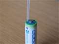 プラス電極の横にある穴の片方に付属のスポイトを使って水を入れます。緊急時に水が無い場合は、水分であれば、概ね何でも代用できるとのことです。今回は水道水を使用しました。