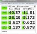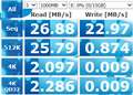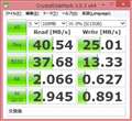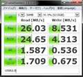速度計測時は1000MBでは時間がかかりすぎて途中でキャンセル、100MBや50MBで何度か計測しましたが、何度計測しても添付画像程度の結果しかでませんでした。