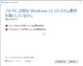 結果、やはり、セキュリティチップ(TPM1.2以上)非搭載及び非UFEI環境の本PCでは、アップグレードできない事が分かりました(CPUについては要件をスキップできましたが)。写真参照。