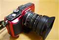 R−D1sに装着した状態、赤く見えるのはUV−IRフィルター |