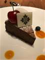 ディナーのデザートにはカラトラバ十字があしらわれたチョコケーキがとても素敵でした。