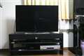 天板はガラストップで、艶消しブラックがシックです。黒いブラビアと調和します。
