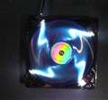 青いブレードに白いLEDもおもしろいし、羽の形状の影響で