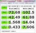 カタログ等に有る Read 221.8 MB/s / Write 220.8 MB/s と言う数字は出ません。
