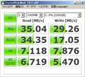 intelとASMediaでの差はほとんど無く、UASPモードでU100と同等のスコアとなっています。このUSB変換チップはNCQ非対応らしくQD32のみSSDより低くなっています。※PC内蔵のU100ではRead 27MB/s程度です。